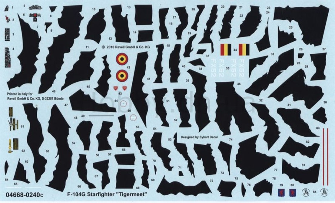 | 10th wing - 31th sqn "Tijger" - Tiger meet 1978 Kleine Vogel AB - F104G (FX52) | Syhart Decal 72-067 or Revell 04668 | View View | View |