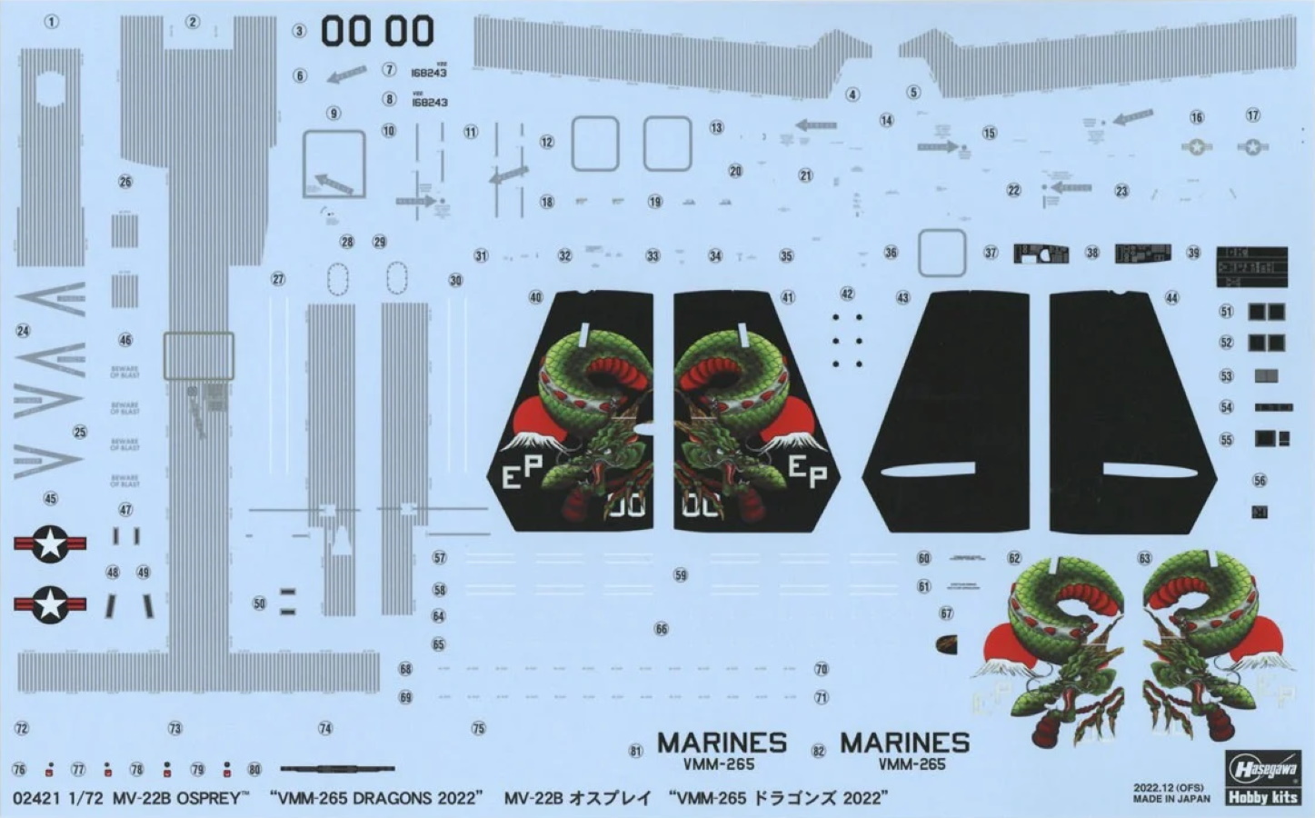 Hasegawa - Japan Bell/Boeing MV-22 "Ospréy" - Marine Medium Tiltrotor Squadron 265 (VMM-265) "Dragons" - CAG bird 2022 |