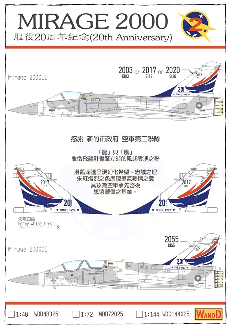 Dassault Mirage 2000-5Di/Ei - 2nd TFW (499th TFW) - 20 years of Mirage 2000-5 - Hsinchu Air Base AB AIDC F-CK-1 "Ching-Kuo" - 1st TFW (443rd TFW) - 9th TFG - Special "Fengtou Goshawk" - 25 years service F-CK-1 - Tainan AB