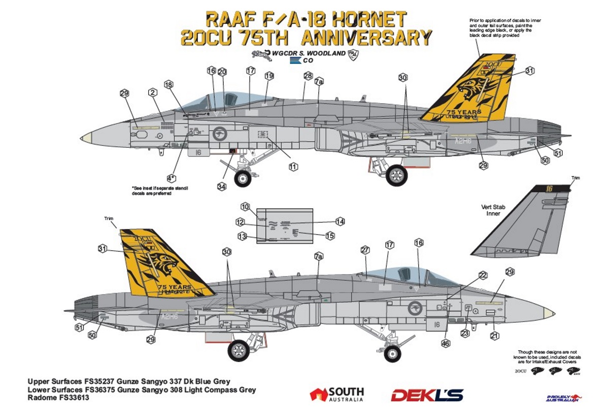 Base Williamtown - New South Wales McDonnell Douglas F/A-18A "Hornet" - No. 81 Wing - 2 OCU (Operational Conversion Unit) - 75 years - RAAF Williamtown - New South Wales McDonnell Douglas F/A-18A "Hornet" - No. 81 Wing - 3 sqn - 90 years - RAAF Williamtown - New South Wales |